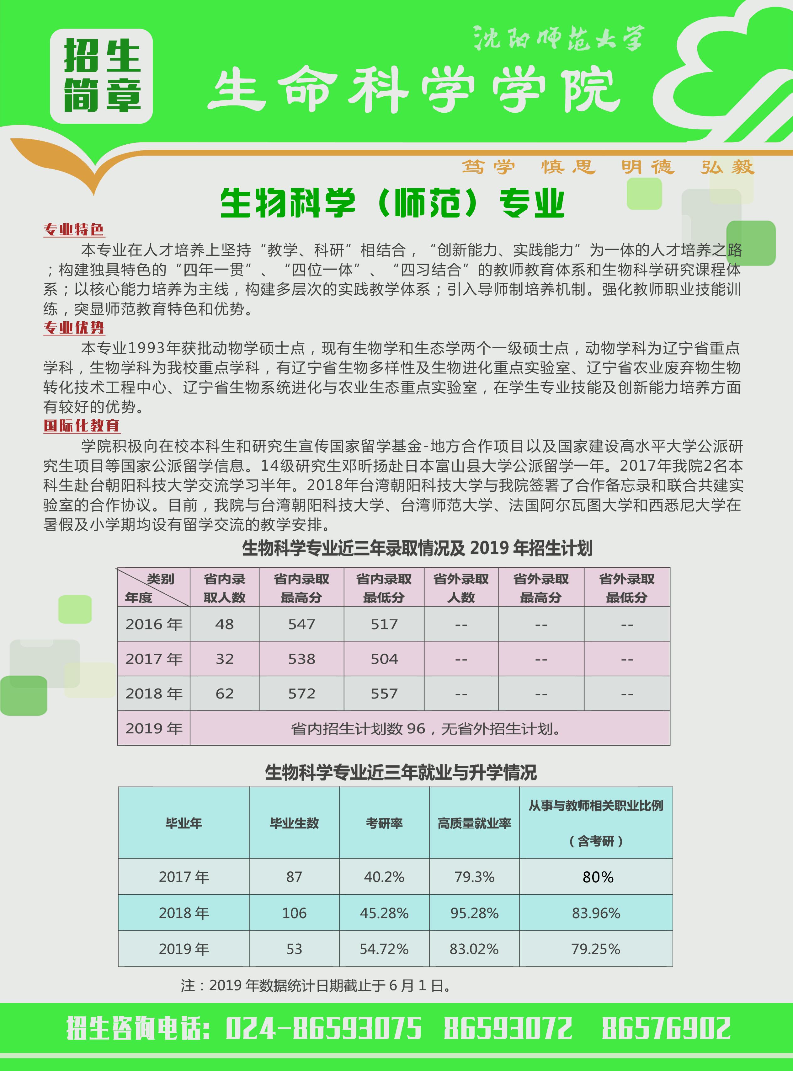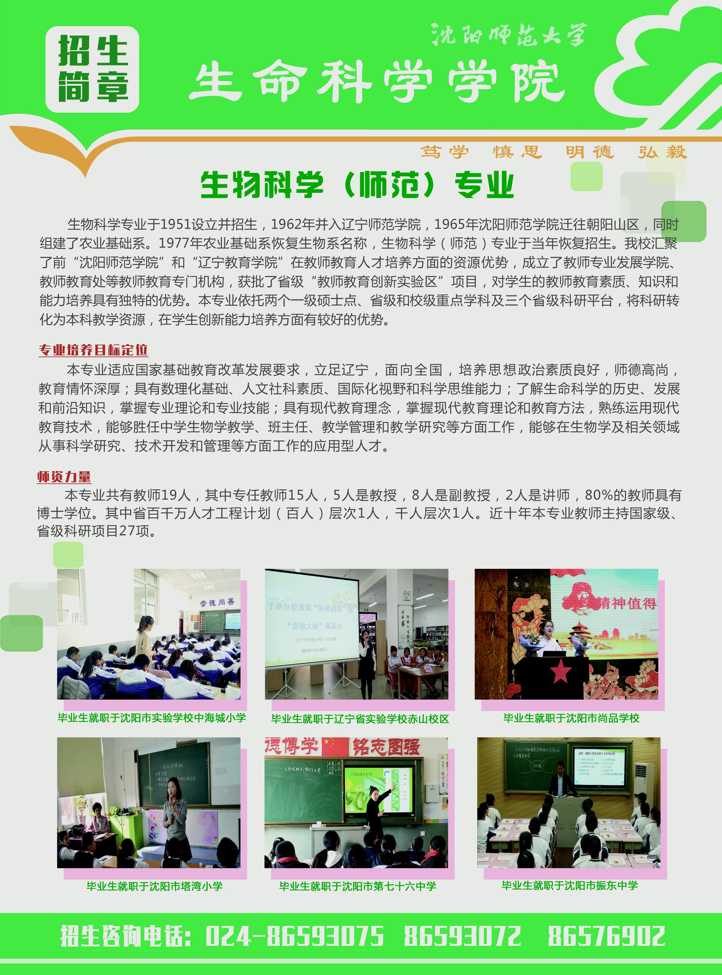EMC易倍官方网站生物科学(师范)专业2019年招生简章