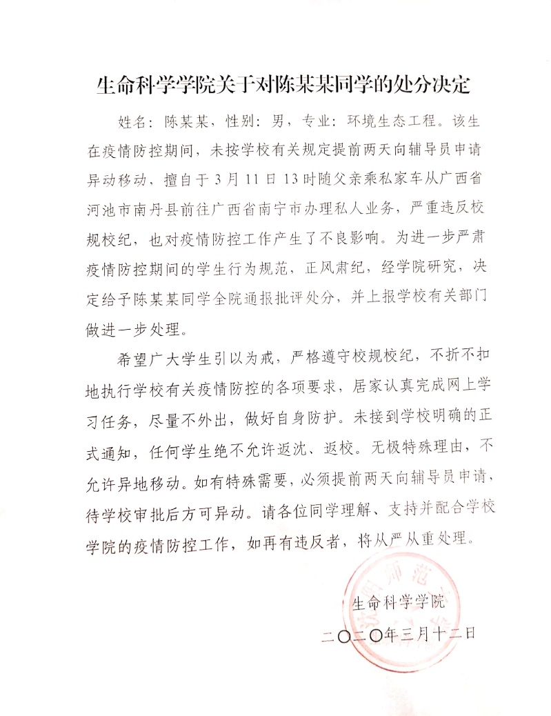 EMC易倍官方网站关于对陈某某同学的处分决定