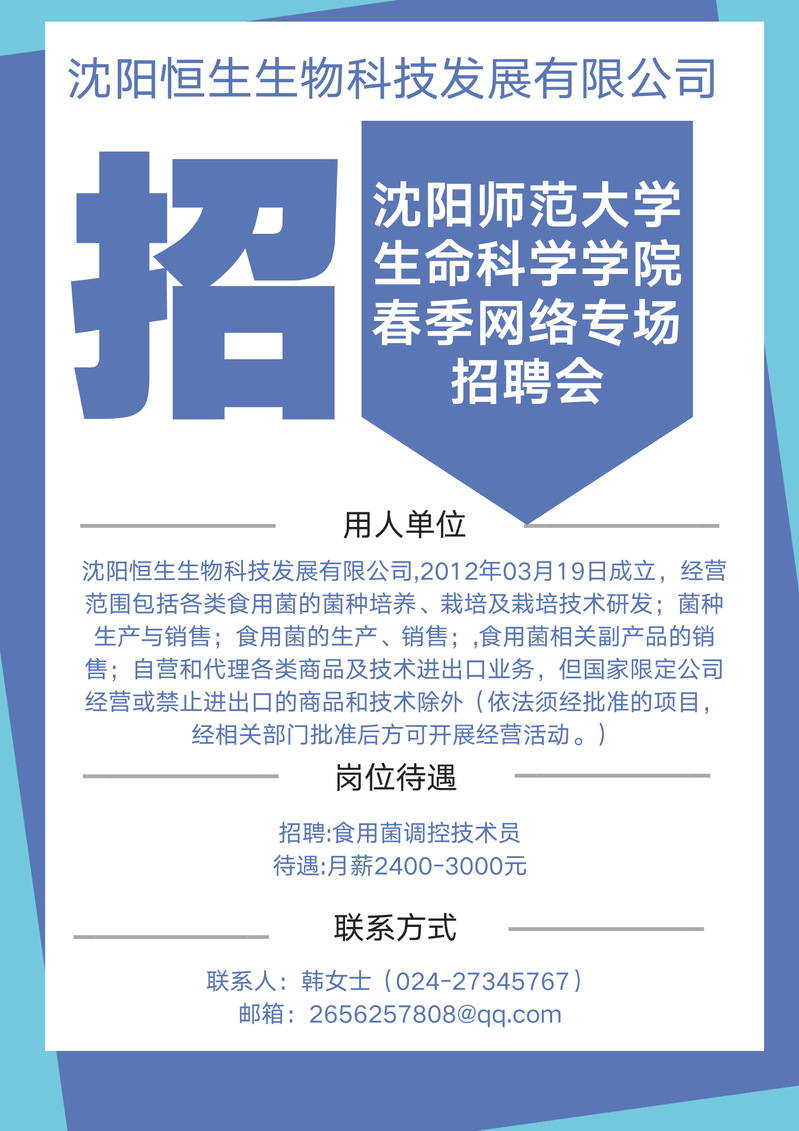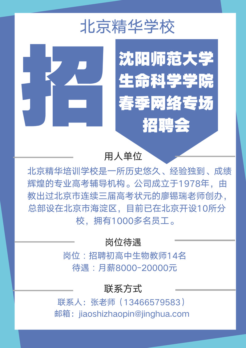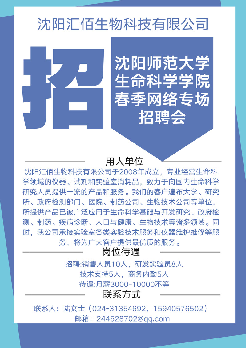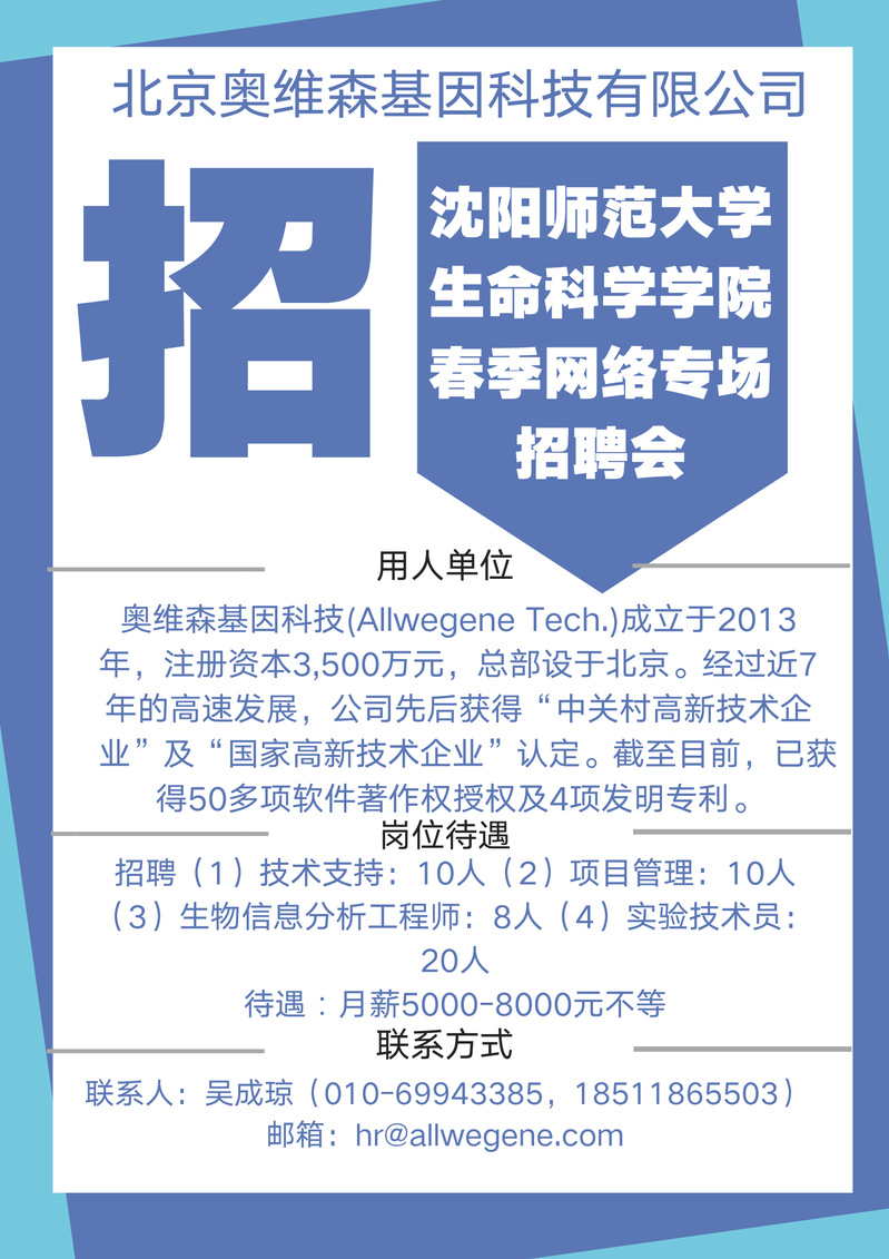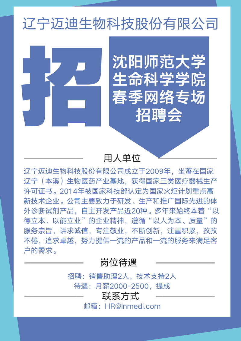EMC易倍平台2020届毕业生(生物科学、生物技术专业)春季网络专场招聘会