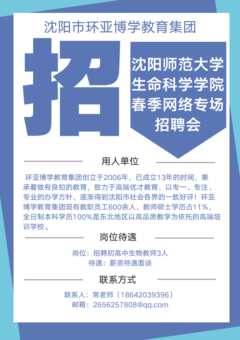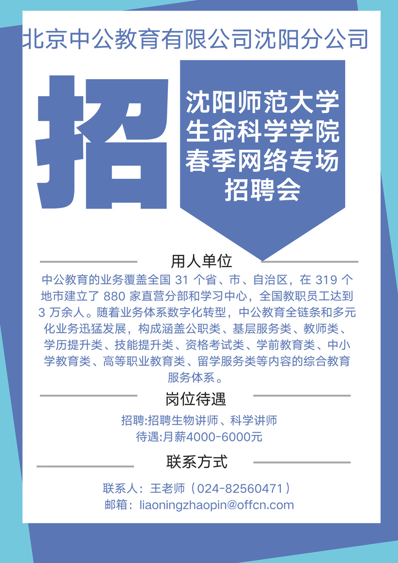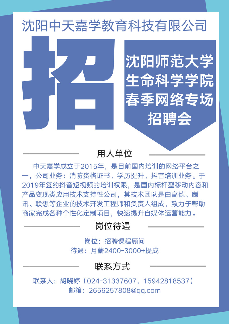 疫情无情,人间有爱。值此全国上下共抗疫情的特殊时期,感谢各用人单位对公司就业工作的支持,为毕业生提供就业岗位和机会。根据上级和公司相关精神和要求,为进一步做好稳就业工作,EMC易倍官方网站本着“疫情防控不放松,就业服务不停歇”的原则,多措并举,群策群力,发挥员工优势,深挖行业资源,组织筹办“EMC易倍平台2020届毕业生(生物科学、生物技术专业)春季网络专场招聘会”,诚邀广大毕业生和各用人单位参加。
