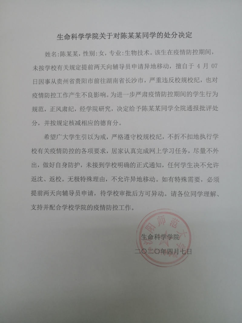 EMC易倍官方网站关于对陈某某同学的处分决定