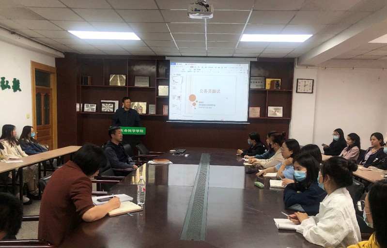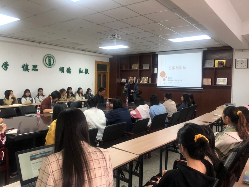 索柏民教授首先从结构化面试和非结构化面试的区别进行讲授,讲解了考试的不同形式,不同省份面试题型的区别,重点剖析了辽宁省结构化面试的三个主要题型。随后索柏民教授从“为什么报考公务员”、“你准备好了吗”、“公务员包含的内容”、“如何准备面试”等几个方面对同学们所关注的公务员面试进行了细致的讲解。索柏民教授强调面试要提前进行大量的准备,并站在考官的角度结合面试实例对面试考生的各方面进行评价,最后用具体试题提醒同学们面试时需要注意的细节,解答了同学们提出的问题。此次指导会,同学们认真听取老师的指导建议,纷纷表示受益匪浅。