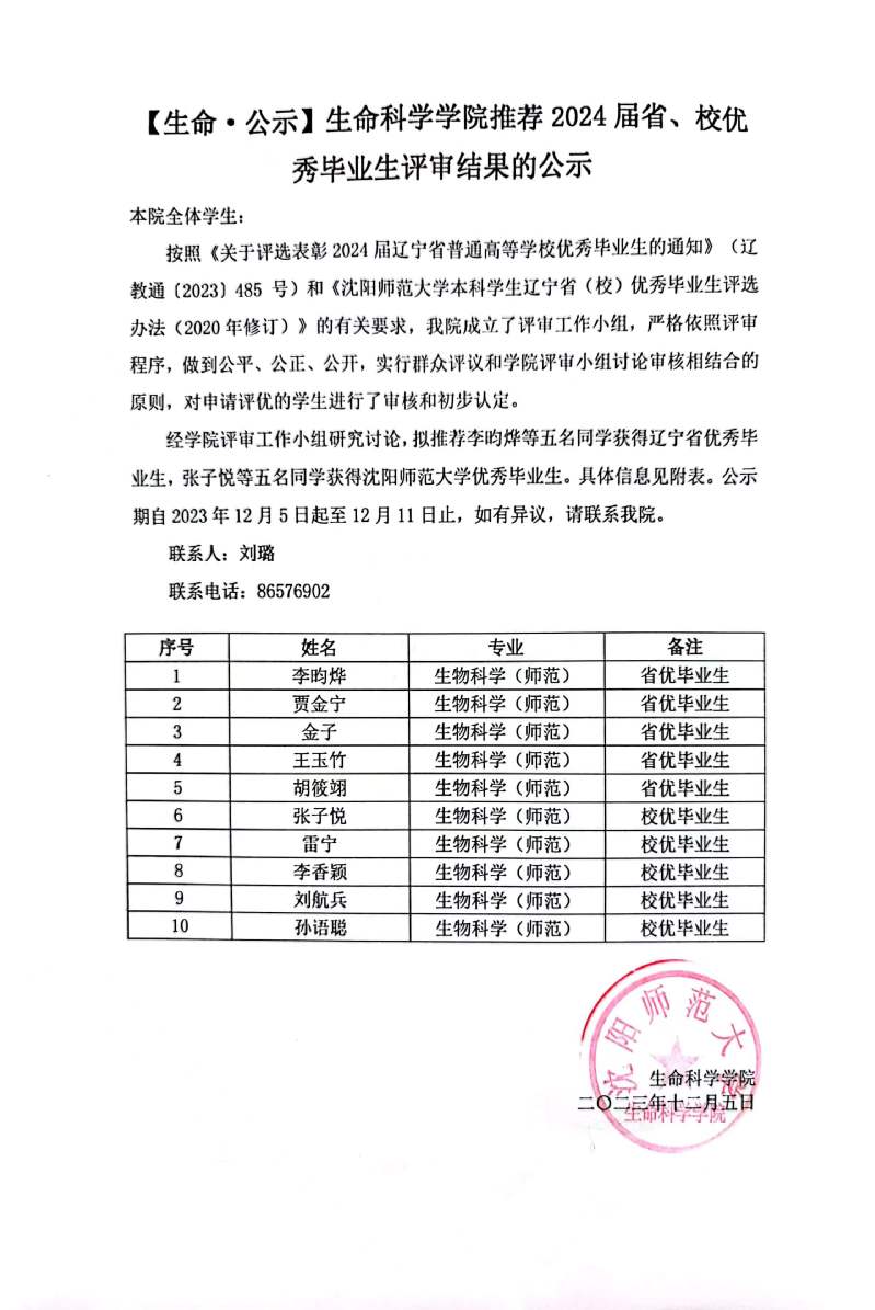 【生命·公示】EMC易倍官方网站推荐2024届省、校优秀毕业生评审结果的公示