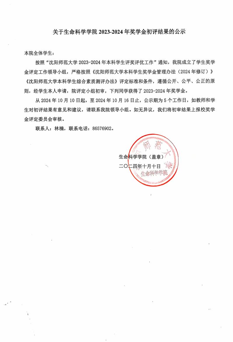 关于2023-2024年奖学金初评结果的公示(最新附件9).doc
